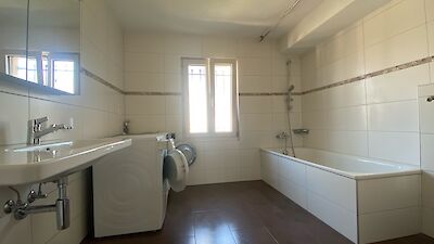 -Badezimmer mit Badewanne